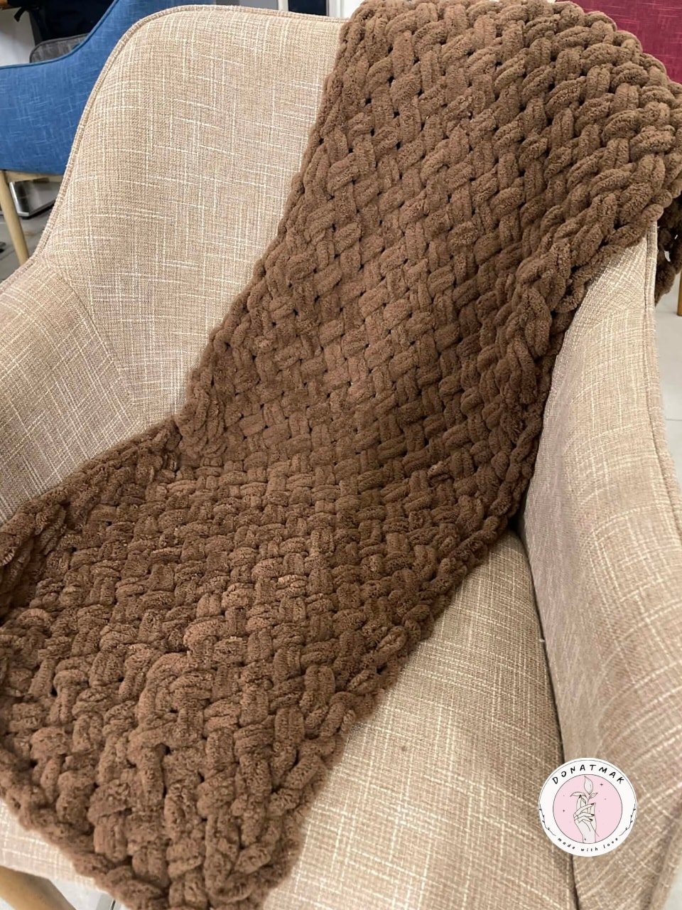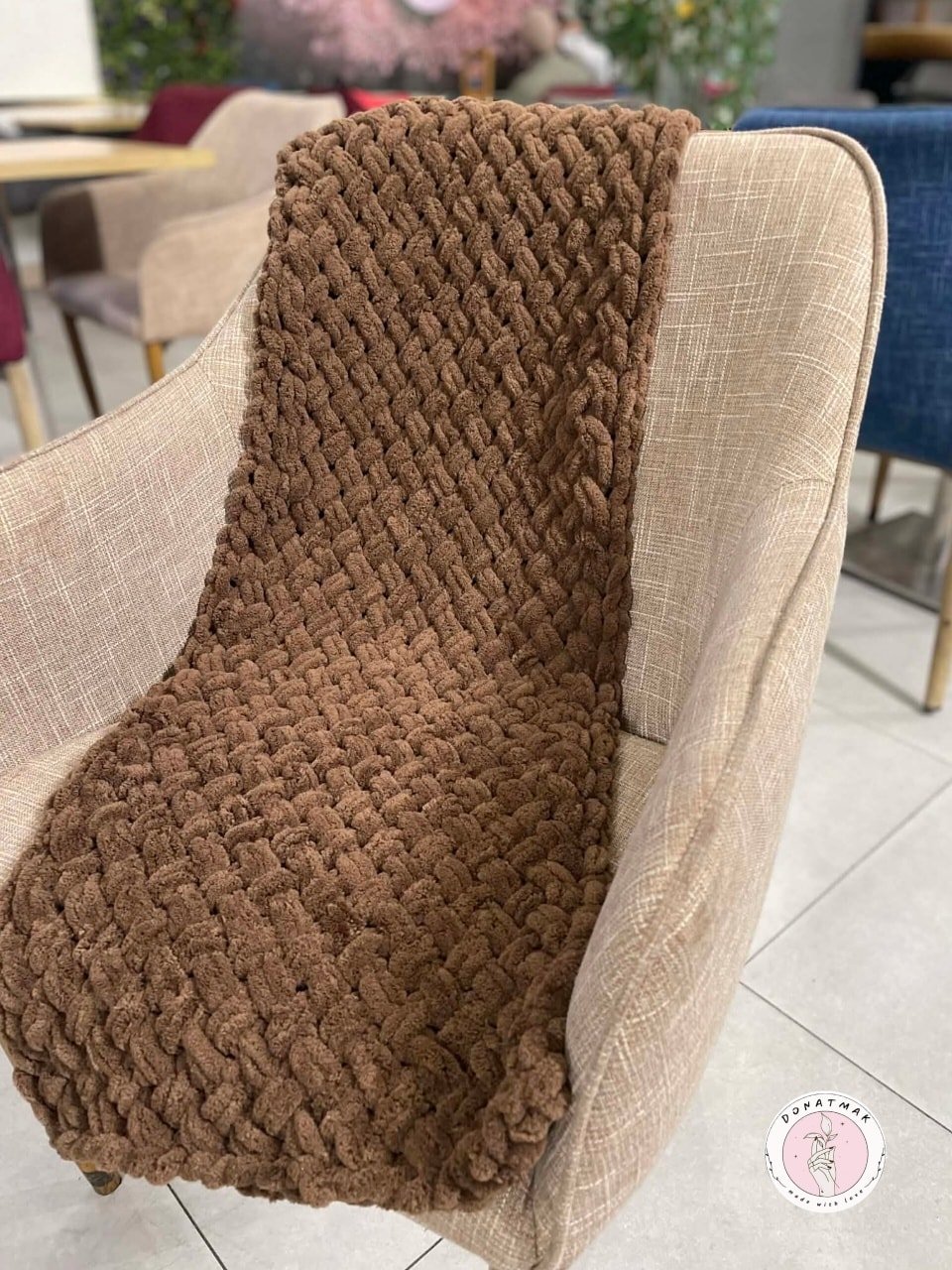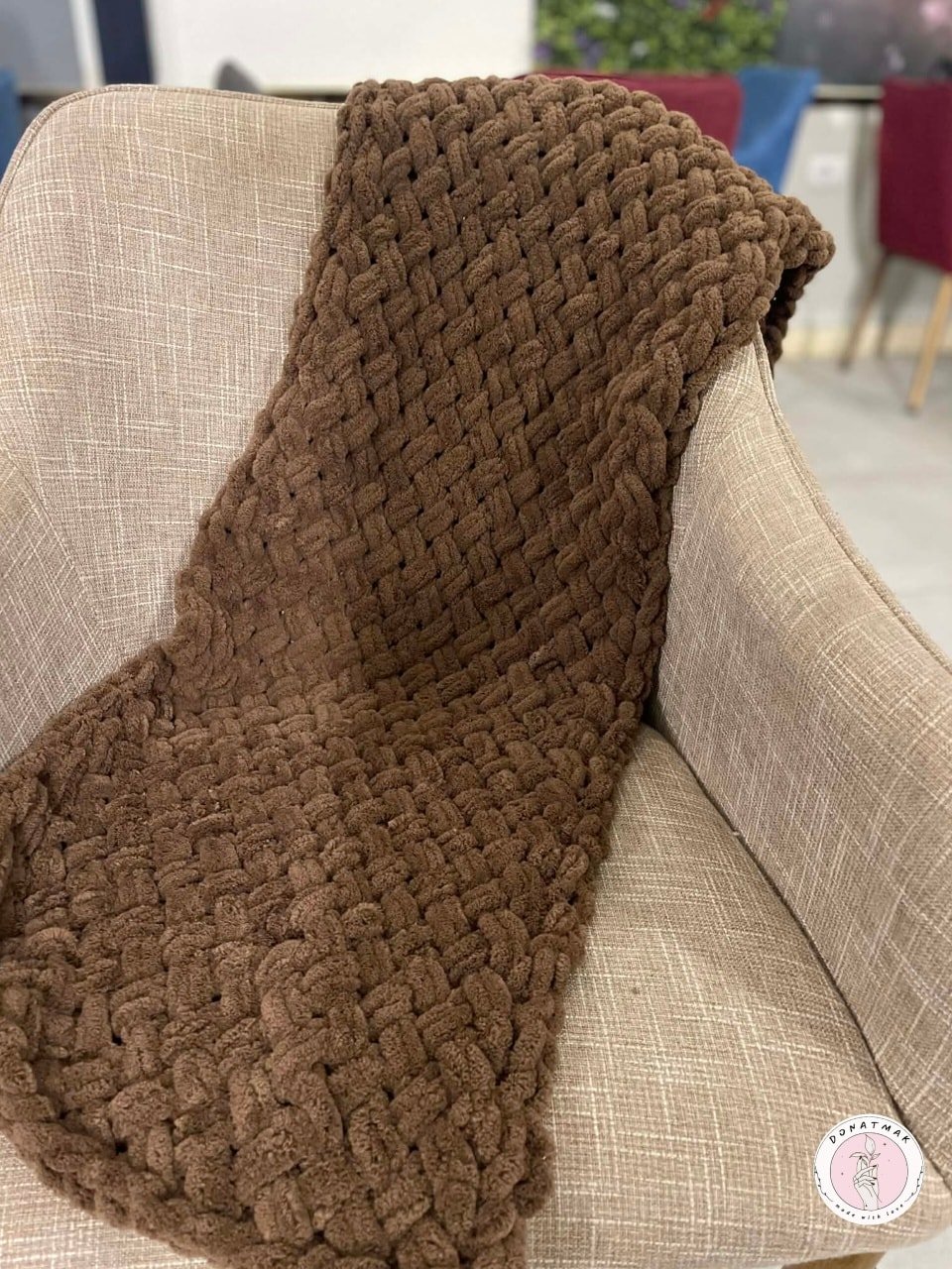 أضف لمسة من الدفء والأناقة إلى مظهرك مع هذا الشال المصنوع يدوياً بعناية فائقة. يتميز بتصميمه الكلاسيكي ولونه البني الدافئ الذي يناسب مختلف الإطلالات الشتوية.