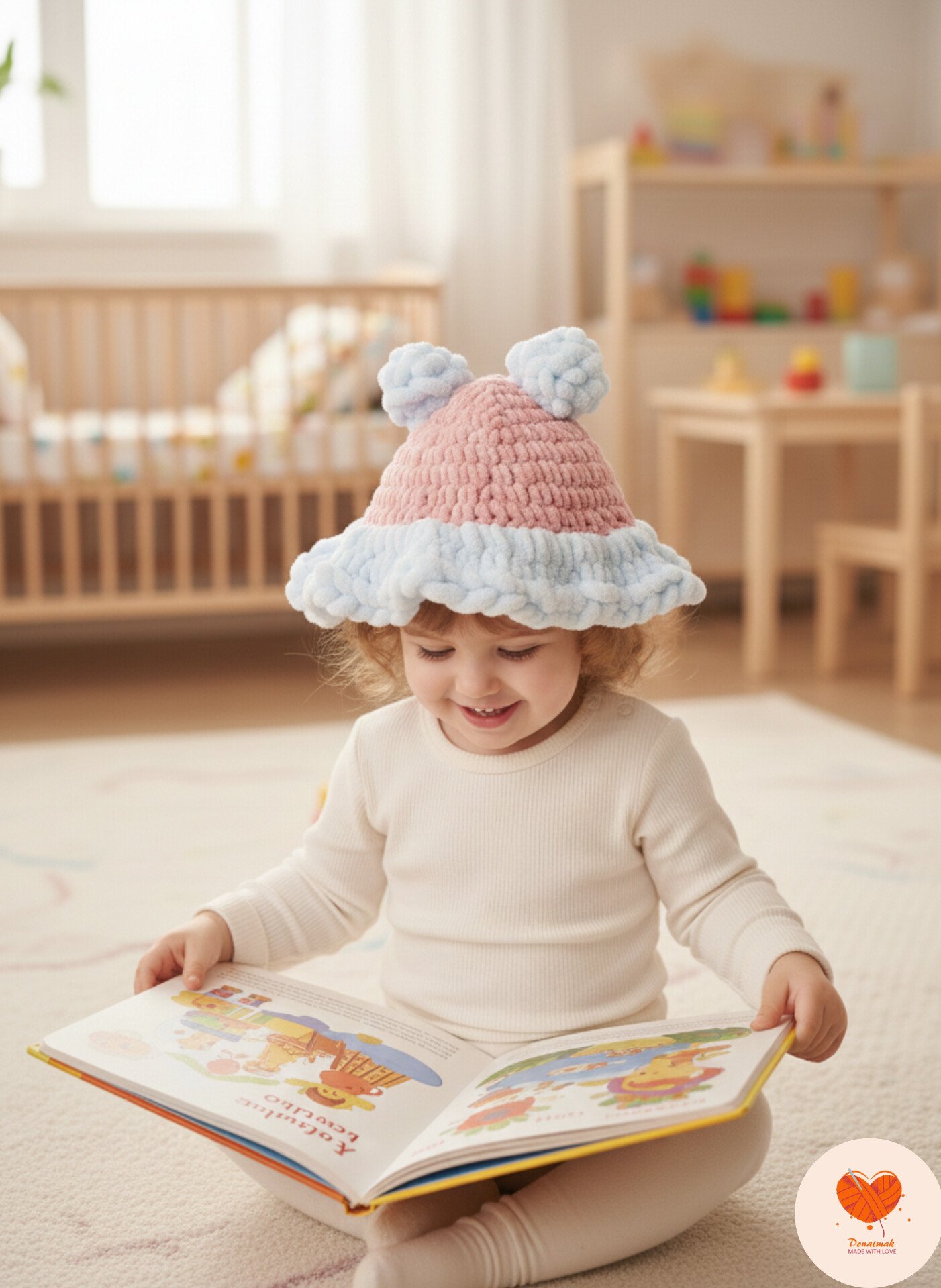 قطعة فنية بلمسة قطنية ☁️🧸 طاقية البافي بأذان الدبدوب.. الأناقة بتبدأ من التفاصيل الصغيرة.