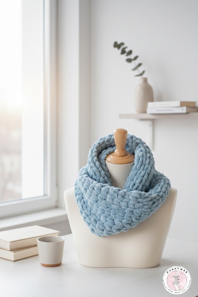 كوفية (رقبة) دائرية مشغولة يدوياً بغرز عريضة وفاخرة من خيوط البافي
